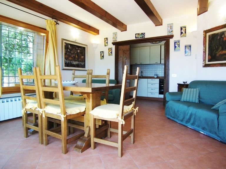 "Sole" befindet sich nur 7 km von Porto S. Stefano entfernt, auf dem Vorgebirge oberhalb der Insel Rossa. Das Haus bietet ein einzigartiges Panorama: Ob Sie auf einer Gartenbank oder auf der Sitzgruppe unter dem Pavillon sitzen, der Blick aufs Meer und auf die Insel Giannutri ist immer ein Genuss. Die Ruhe, die Eleganz und die Privatsphäre sind die Besonderheiten dieses Hauses. Durch ein elektrisches Tor kommt man auf das Grundstück und nach 40-50 m erreicht man den Autoabstellplatz (es gibt genug Platz für zwei Autos), der neben dem Haus liegt. Olivenbäume, Zypresse, Rosmarinbüsche und andere Mittelmeerpflanzen dienen als grüne Barriere und schützen vor den Blicken der Gäste der anderen zwei Villen ("Ambra" e "Smeralda"), die am Anfang des Grundstückes liegen. Zwischen "Sole" und den anderen zwei Villen liegt eine kleine Zypressenallee, die zum Besitzerhaus führt. Der Besitzer, der viel Respekt vor der Privatsphäre der Gäste hat, wohnt gelegentlich in der Villa, die etwas oberhalb liegt (allerdings ist die Vegetation so dicht, dass man vom Besitzerhaus die anderen Villen nicht sehen kann). "Sole" verfügt über eine kleine grüne Terrasse mit Ausblick, ideal für Künstler oder für diejenigen, die gerne lesen und die Ruhe lieben, die nur so ein Panorama vermitteln kann. Die Einrichtung macht dem Panorama Ehre: Beim Eintreten gelangt man durch eine Schiebefenstertür ins Wohnzimmer. Hier kann man die wunderschöne alte Tür mit vier Flügeln bewundern, die das Wohnzimmer von der Küche trennt. Die Küche verfügt über eine Spülmaschine, einen Gasherd, einen Ofen, einen Kühlschrank mit Tiefkühlfach und alles was man zum Kochen braucht. Vom Wohnzimmer aus, das über einen Kamin und Sat TV verfügt, kommt man in den Schlafbereich. Er besteht aus einem Zweibettzimmer, einen Bad mit Dusche im Flur und einem Doppelbettzimmer mit Bad mit Dusche. Von Außen erreichbar ist die drittes Zweibettzimmer mit einem kleinen Bad mit Waschbecken und WC. "Sole" ist ideal für alle, die auch das Kindermädchen oder die Großeltern im Urlaub mitnehmen wollen. Der nächste leicht erreichbare Zugang zum Meer befindet sich in ca. 3.3 km Entfernung (Le Cannelle). Man kann mit dem Auto dorthin fahren und entlang der Straße parken. Danach sind es nur noch 200 m zu Fuß zum Strand. "Sole" ist das richtige Haus für jemanden, der Ruhe und Entspannung sucht. Einmal dort gewesen werden Sie wiederkehren wollen