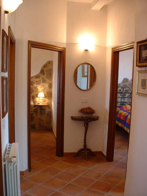 Ein Ferienhaus, wie man es sich wünscht. Es liegt neben dem Haus „Il Frantoio“, aber es ist durch eine Wand und ein Blumenbett davon getrennt, daher ist die Privatsphäre garantiert. Der Haupteingang befindet sich auf der Rückseite des Hauses. Von hier aus geht man über eine Tuffsteintreppe vom Autoabstellplatz zum eingezäunten Garten. Im Wohnraum befinden sich ein großer Tisch, ein Sofa, TV-Sat und eine Küchenzeile mit Herd, Kühlschrank mit Tiefkühlfach, Spülmaschine und Waschmaschine. Vom Wohnraum aus kommt man durch eine Terrassentür zu der überdachten Terrasse. Von hier genießt man einen schönen Blick auf den unterliegenden Pool und auf die Stadt Grosseto. Eine Tür trennt den Wohnraum vom Schlafbereich, der über zwei Duschbäder und drei Schlafzimmer verfügt: Zwei Zimmer mit Doppelbett und eins mit zwei einzelnen Betten. Bei Bedarf ist es möglich gegen einen geringen Aufpreis ein Zusatzbett dazu zu stellen. Die Einrichtung ist geschmackvoll und macht das Haus warm und angenehm.