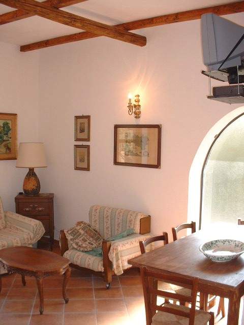 Dieses Ferienhaus ist wie geschaffen für Individualisten, die das Besondere lieben. Il Poggio ist umgeben von einem schönen, eingezäunten Grundstück. Für das Auto steht ein schattiger Abstellplatz unter einer Pergola bereit. Auf die kleinen Gäste wartet eine Schaukel und für Tafelfreuden im Freien sorgt auch hier ein gemauerter Grill. Über eine Längsseite des Hauses zieht sich eine überdachte Terrasse. Man kann hier auch bei schlechtem Wetter oder bei großer Hitze bequem „unter Dach“ sitzen. Vom Vorzimmer kommt man zuerst in das Wohnzimmer mit einer schönen, gemauerten Einbauküche und einem gemütlichen Essplatz. Auch hier steht natürlich ein Fernseher mit SAT. Links liegt ein bezauberndes intimes Schlafzimmer, ideal für langes Ausschlafen ohne Zeitdruck und Wecker. Daneben ist ein hübsches Badezimmer. Rechts vom Wohnzimmer ist eigentlich das Schönste – ein kleiner "Sala da Giardino", also ein kleiner Gartensalon. Es wurde hier ein Stück der überdachten Terrasse (2,5x3 m) mit Glaswänden abgetrennt. Dieser Raum ist vom Wohnzimmer aus begehbar und mit der Doppelbettcouch und den hübschen Vorhängen ein gemütliches Schlafzimmer bei Nacht und auch ein sehr nettes zusätzliches Wohnzimmer bei Tag. Eine Klimaanlage gibt an heißen Sommertagen Erleichterung, Waschmaschine und Spülmaschine stehen Ihnen zur Verfügung. Ein runder Pool im Garten von 5,5 m Durchmesser macht diese Unterkunft einzigartig.