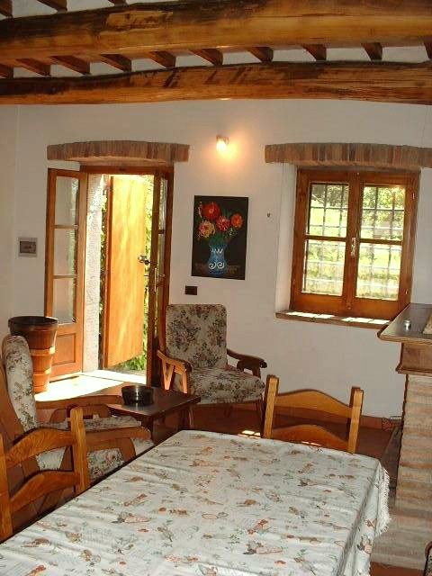 Das ehrwürdige, unter Denkmalschutz sehende Gebäude, wurde vor Jahren vom Besitzer mit viel Sachkenntnis und Feingefühl nach den alten Plänen wieder aufgebaut. Es war nur noch eine Ruine. Es wurde in drei grosszügige Wohnungen aufgeteilt. Jede hat einen separaten Zugang von aussen. Da das Haus am Hang liegt, ist es von drei Ebenen begehbar. Auch die Terrassen wurden so angelegt, dass jeder ungestört sein kann. Seitlich steht noch ein kleines Haus, ebenfalls mit eigenem Aussenbereich. Etwas tiefer versetzt auf dem Grundstück, eingebettet in Grün, wartet auf die Gäste ein Pool (5x10 m). In einiger Entfernung, damit sich niemand gestört fühlt, ist ein eigener Tennisplatz. Hier finden Sie Luxus, zugleich auch Gemütlichkeit. Die Atmosphäre garantiert einen unvergesslichen Urlaub. Das 7 ha grosse Grundstück ist mit einem Tor verschlossen. Etwas abseits steht ein kleines Kirchlein - la Chiesina - , das diesem Gelände den Namen gab. Das Haupthaus war in alten Zeiten ein Zollhaus. Hier entlang gingen die Salzlieferungen vom Meer in den Norden. Im Laufe der Zeit fand man bequemere Wege. So geriet die beschwerliche Strasse über die Berge in Vergessenheit und auch das Zollhaus. Übrigens wird erzählt und in alten Büchern über Arcidosso erwähnt, dass hier ein Schatz vergraben sein soll. Bei den Bauarbeiten kam er allerdings nicht zum Vorschein...