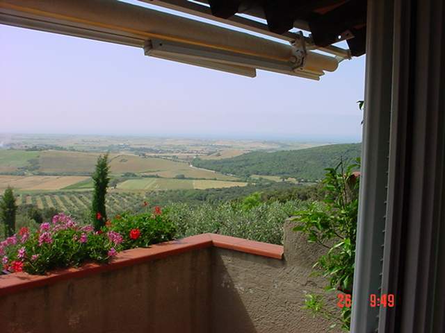 Capalbio liegt ganz unten im Süden der Toscana, an der Grenze zu Lazio. Es ist ein kleiner, aber unter Insidern gut bekannter Ort auf einer Hügelkette unweit des Meeres. Eine gut erhaltene Stadtmauer umgibt das gepflegte, mittelalterliche Städtchen, das in den Sommermonaten von vielen Touristen besucht wird. Capalbio ist ein echter Geheimtipp. Die Straße schlängelt sich vom Meer zum Ort hoch und kurz davor liegt eine Wohnanlage, die vorwiegend nur von den Eigentümern bewohnt wird. In dieser wie ein altes toscanisches Dorf erscheinende Anlage liegt das 'La Loggia'. Es hat zwei Schlafzimmer (jeweils für 2 Personen), zwei Bäder einen Balkon und eine Loggia, die dieser Wohnung den Namen gab, einen nett eingerichteten Wohnraum und eine kleine, moderne Küche. Die Wohnung ist mit einer Gasheizung ausgestattet, so dass man hier auch in der kühleren Jahreszeit Urlaub machen könnte. Von dem Balkon hat man einen herrlichen Blick aufs nahe Meer. Das große, in viel Grün eingebettete Schwimmbad, das natürlich auch von allen anderen Bewohnern mitbenutzt wird, ist von Juni bis September geöffnet. Zur Wohnung gehört auch ein eigener Autoabstellplatz.
