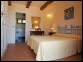 Smeralda Über eine Stufe erreicht man eine erhöhte, überdachte Terrasse mit bequemen Gartenmöbeln. Von hier geht es ins Haus. Zuerst in den großen Wohnraum mit offenem Kamin. Die hübsche Küchenzeile ist durch eine Theke abgeteilt. Ein Schlafzimmer ist mit Ehebett, das andere mit zwei getrennt stehenden Betten ausgestattet. Dann gibt es noch zwei Bäder, eines davon mit Waschmaschine.