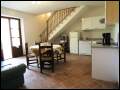 Giuggiolo (6+1 Pers.) Diese Wohnung liegt auf der rechten Seite mit einer großen Palme im Garten, durch den man eine überdachte Terrasse erreicht. Bequeme Gartenmöbel laden zu gemütlichem Essen im Freien ein. Das Haus hat einen Vorder- und einen Hintereingang. Über den Vordereingang kommt man in den Wohnraum mit Kochzeile. Alles ist bis ins kleinste Detail sorgfältig eingerichtet. Küche mit Holzwänden, einem schönen toskanischen Tisch und auf der Rückseite eine Tür, die den Blick auf die wunderschönen Weinberge freigibt. Im Parterre befindet sich ein großes Doppelschlafzimmer mit Kamin. Von hier aus kommt man durch eine Fenstertür in einen Bogengang und weiter zu einem Duschbad. Zwei kleine Treppen, neben der Dusche, führen zu einem Doppelschlafzimmer, einem Schlafzimmer mit zwei Einzelbetten und einem zweiten Duschbad.