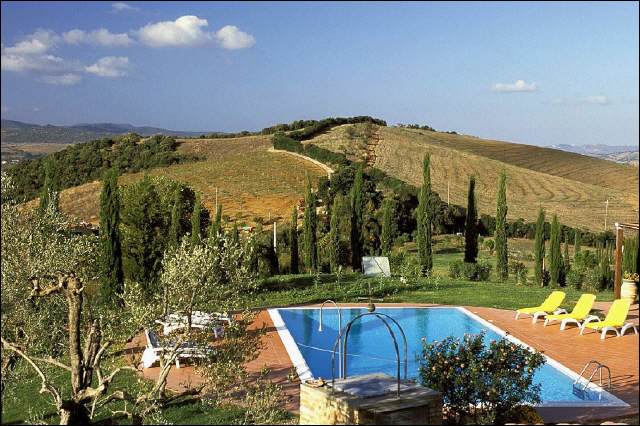 IL COLLE Wenn man gerne Golf spielt, wenn man gerne seinen Urlaub an einem Ort verbringt von welchem man einen wunderbaren Blick auf die Stadt Grosseto genießen kann, wenn man das Sonnenbaden am Swimmingpool liebt oder die toskanischen Hügel, dann ist das Gut Il Colle mit seinem für die Gegend typischen Steinhaus genau das richtige. Die Besitzer, nach einigen Jahren auf der Suche nach einer Wohnung auf dem Lande um sich dort niederzulassen, stießen vor ca. 4-5 Jahren auf eine alte Ruine. Dank ihrer Zähigkeit, ihrem guten Geschmack und nach Monaten harter Arbeit gelang es ihnen die alte Ruine wieder aufzubauen, in welche sie sich einige Zeit zuvor verliebt hatten. Gut Il Colle findet sich im Grün der Hügel von Grosseto inmitten der unzähligen hundertjährigen Olivenbäume des Besitzes. Golf zu spielen ist die Leidenschaft der Besitzer so, dass sie einen 4-Loch Golfplatz auf dem Besitz angelegt haben. Die Gäste dürfen dort Golf spielen und die Besitzer stellen Schläger und Bälle zur Verfügung. Die andere Leidenschaft der Besitzer sind die Hunde: Man wird von ihren 3 Hunden bei der Ankunft begrüßt, etwas beschnüffelt und dann ziehen die Hunde wieder ihrer Wege. Die Hunde sind groß aber sehr gutmütig und wohlerzogen (der Besitzer hat sie an Kursen zur Abrichtung teilnehmen lassen). Allerdings, um auf jeden Fall Probleme sowohl für die Gäste wie auch für die Besitzer zu vermeiden ist es nicht erlaubt Tiere mitzubringen. Die Azienda Il Colle verfügt über eine Dependence im Nebengebäude und ein Appartement Im Hauptgebäude. Sehen wir sie uns zusammen an.