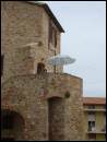 Eines der schönsten Dörfchen in Richtung Siena kurz nach Grosseto ist Batignano. Es liegt oben auf einem Hügel mit weitem Blick hinunter in die Ebene von Grosseto. Durch die günstige Lage ist es ein guter Ausgangspunkt für Besichtigungen und Ausflüge. Es liegt nur ca. 5 km von der Superstrada entfernt und nach Grosseto sind es nur 9 km, zum Meer ca. 20 km. Um den ganzen Ort gibt es eine Befestigungsmauer mit einem Turm, der 1999 so umgebaut wurde, dass dort die kleine Ferienwohnung La Torretta entstand. Über eine Außentreppe kommt man zuerst auf eine winzige Aussichtsterrasse mit einem wunderschönen Blick, teils auf die Landschaft, teils über den kleinen mittelalterlichen Ort. Hier stehen Gartenmöbel, damit Sie von hier die faszinierende Aussicht auch richtig genießen können. Von hier gelangt man in einen großen, gemütlichen Wohnraum. Über eine Wand zieht sich ein Gewölbebogen, darunter befindet sich ein Rundkamin, alles originalgetreu renoviert. Vom Wohnraum kommt man links in ein kleines Duschbad. Klein deshalb, weil dieser Platz früher nur eine Art Rundgang war. Rechts geht es über eine Treppe weiter hinauf in das Schlafzimmer mit Ehe- und Einzelbett. Es hat noch die alten Holzbalkendecken und Ziegelfußböden. Aus dem Schlafzimmerfenster hat man hier natürlich wieder einen phantastischen Blick. Übrigens, im Wohnraum ist noch eine Bettcouch (1,20 m), auf der eine weitere Person oder zwei Kinder schlafen könnten. Allerdings wird die Wohnung dann sehr eng werden.